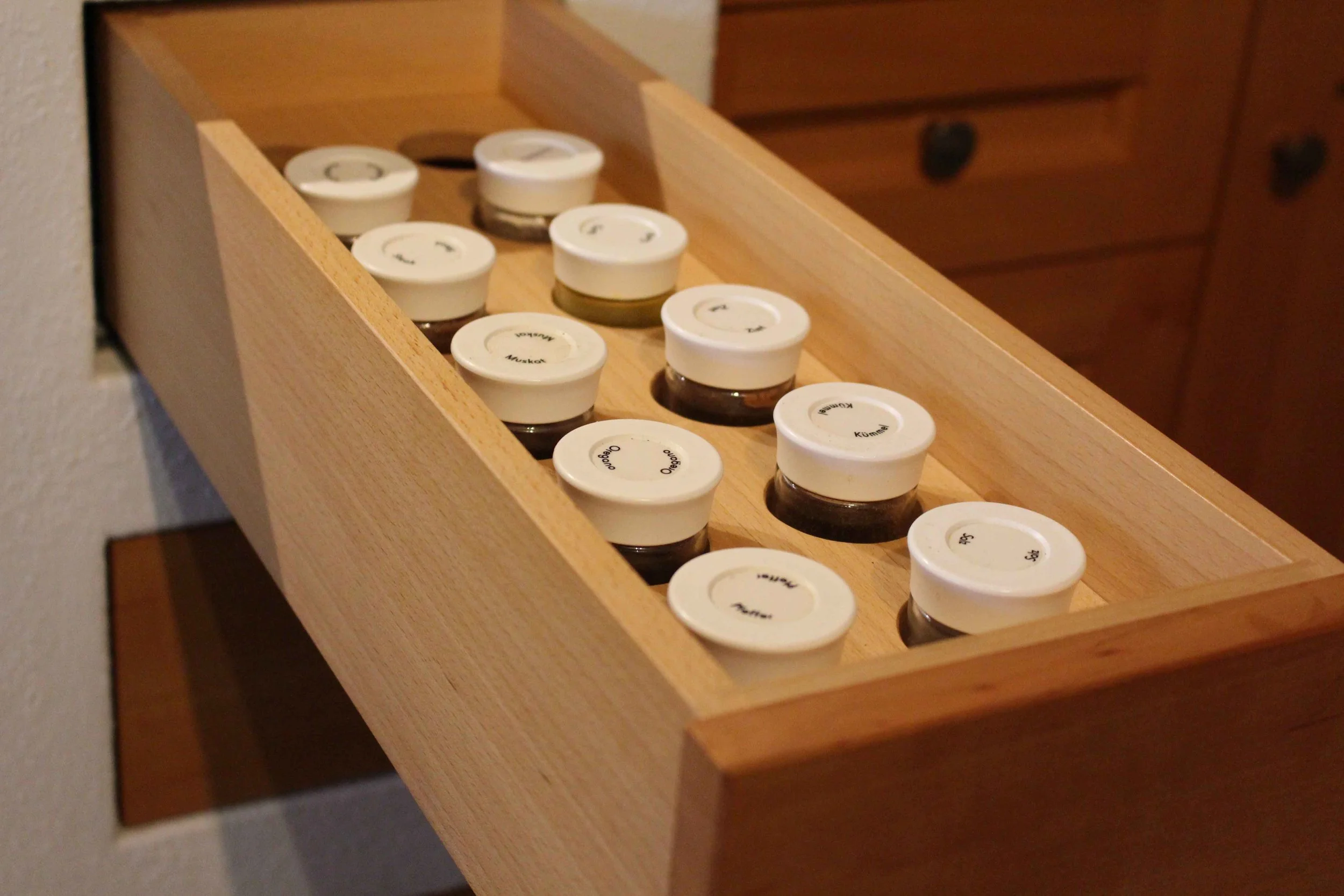 Ein leichter Druck genügt und die elektrisch unterstützten Schubladen fahren aus. Schließbewegung wie gewohnt mit sanften Einzug. Die Einteilungen der Schübe gestalte ich nach Ihren Wünschen.