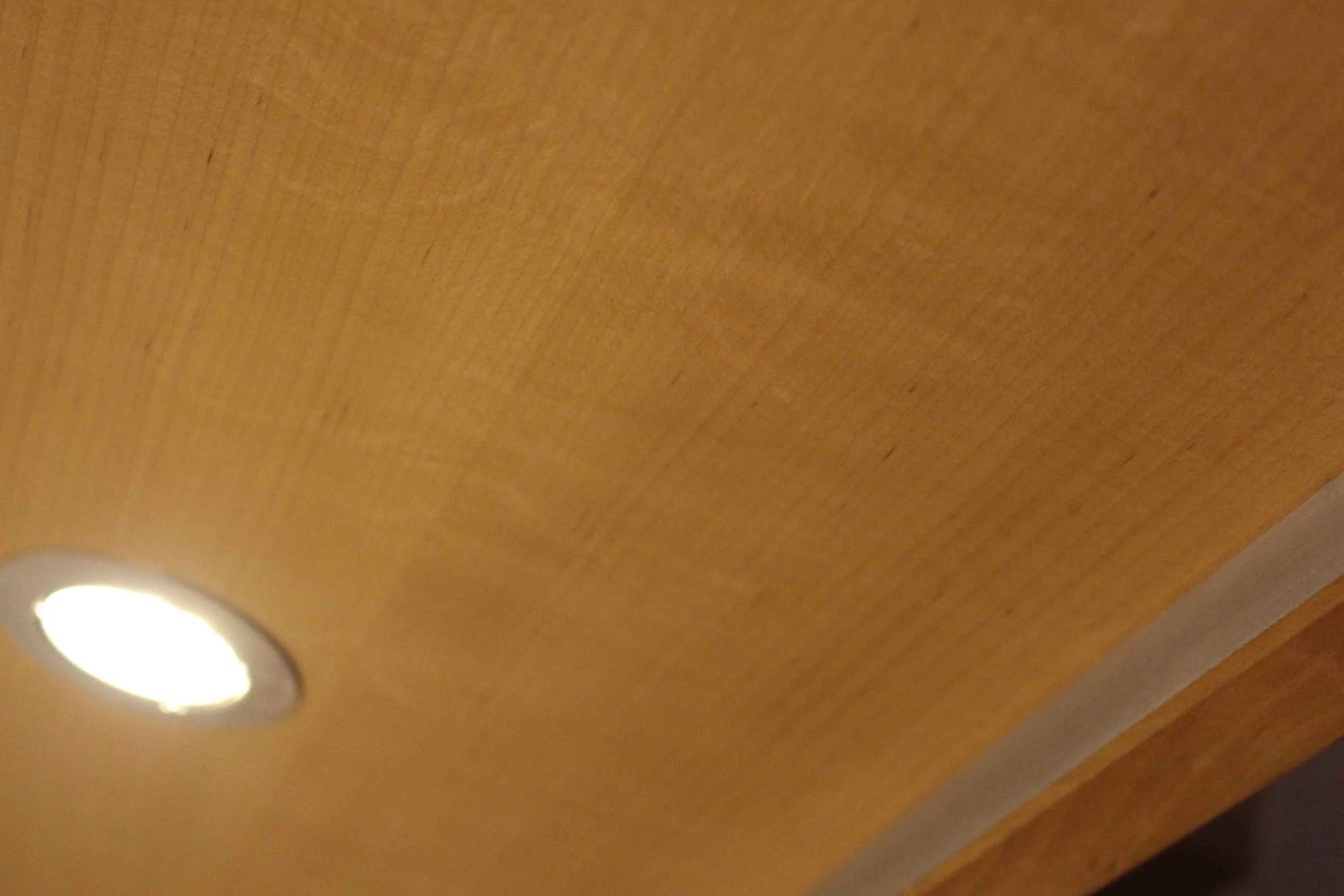 Die an der Unterseite des Hochschranks durchlaufende Aluleiste (rechts) muss zum schalten der Leuchten nur leicht angetippt werden. Lästiges suchen nach dem Schalter entfällt.