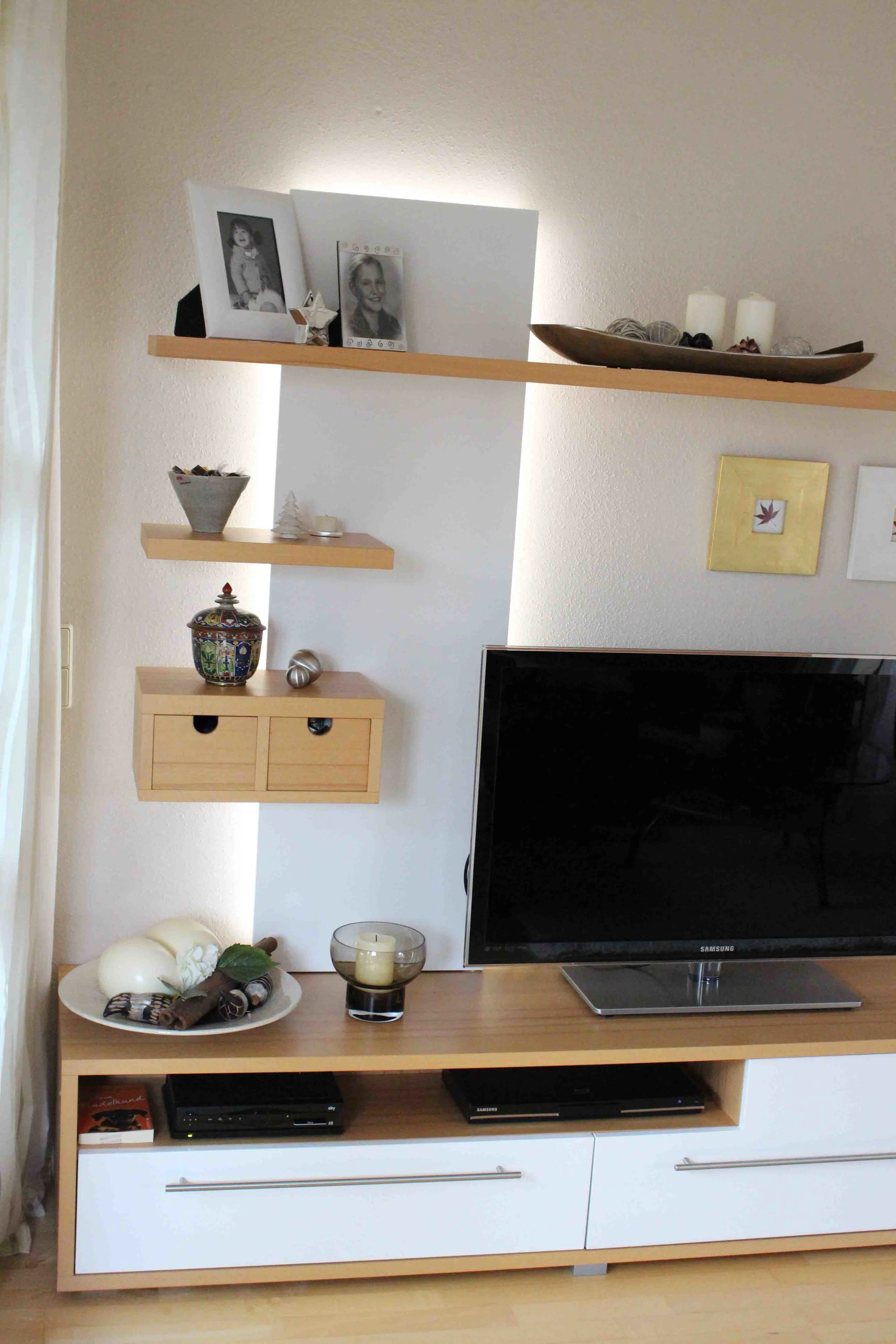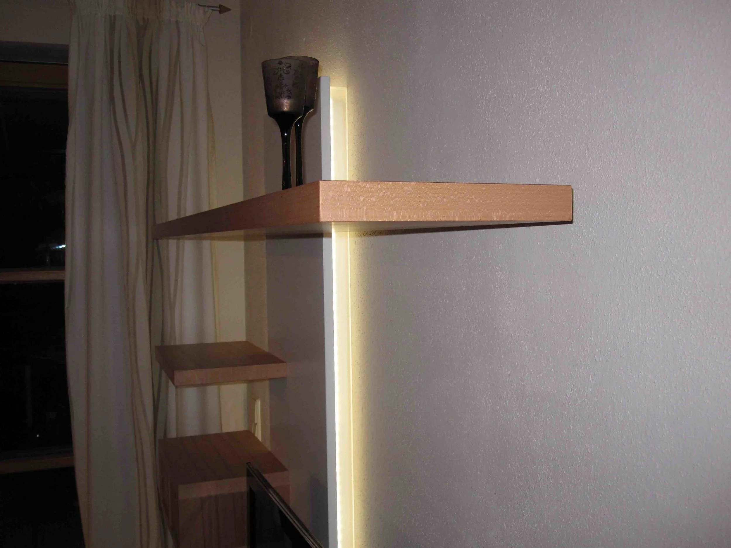 Dieser Schrank ist mit der hinterleuchteten Platte und den vor der Wand "schwebenden" Böden ein Hingucker.